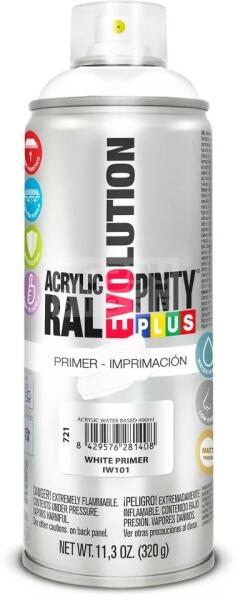 PINTYPLUS EVOLUTION VIZES BÁZISÚ AKRIL SPRAY - ALAPOZÓ FEHÉR - (WHITE PRIMER) 400ML - PP721 A PintyPlus Evolution Water-based, vizes bázisú akril festék spray egy speciális festék azok számára, akinek fontos a környezet védelme. A vizes bázisú EVO spray termékcsalád univerzálisan használható, RAL színekben érhető el. Vizes bázisú spray , ezért bármilyen célra, bármilye