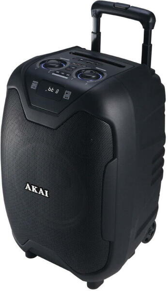 Akai Party Speaker 500 Műszaki adatokBluetooth verzió: 5.0Bth csatorna kibocsátási teljesítménye: 50mWAkkumulátor feszültség: 12V, 7000mAhAkkumulátor típusa: ólom-savRMS teljesítmény: 120WPMPO teljesítmény: 300WFM rádió: 87.5-108MHzMikrofon bemenet: 2 dbVezeték nélküli mikrofon: 2 dbAUX bemenet: igenUSB-nyílás: MP3 lejátszásSD/TF/MMC/Micro-SD: Micro SD kártyaHangszórók