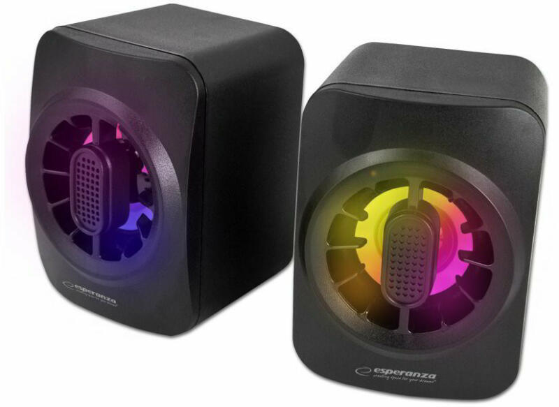 Asztali hangszóró, számítógéphez, laptophoz. Tápellátás az USB aljzaton keresztül. A jack dugót pedig a hangforráshoz kell csatlakoztatni. A hangszórakat körbe véve kék ledek világítanak. - Integrált erősítő - Könnyű beüzemelés, könnyű használat - Áramellátás USB kábelen keresztül közvetlen a számítógépről - Beépített bekapcsoló gomb és hangerőszabályz
