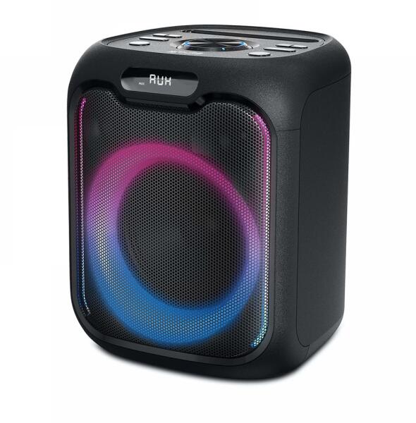 - FM rádió - Színváltó fények - Hangoló gombok fénygyűrűkkel - Kimenő teljesítmény: 60W - Beépített újratölthető lítium-ion akkumulátor (1500mAh / 7.4V) - USB-port MP3 lejátszáshoz - Aux in jack (3...