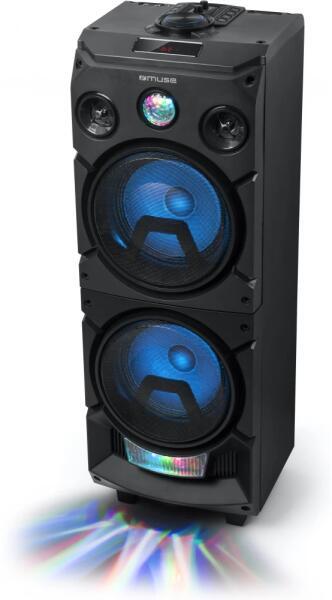Gyártó: Muse Modell: M-1935DJ Leírás: Borostyán LED kijelző Maximális teljesítmény: 400W FM PLL rádió, 60 állomásmemóriával Zene ütemére változó fényeffektek, amelyek kikapcsolhatóak. Csatlakozás: Bluetooth, USB meghajtó, AUX bemenet 2db mikrofon/gitár bemenet Tömeg: 8,4kg Méretek: 83,5 × 26,5 × 28,7 cm Hangszín szabályzás: Mély és magas hangok szabályzása Előre