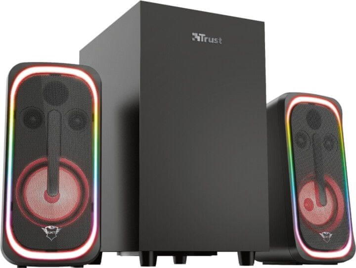 A Trust GXT 635 Rumax RGB 2.1 hangszórók minden zenekedvelőt ámulatba ejtenek. Ezek a hangszórók az aktív modellek közé tartoznak, azaz integrált erősítőt használnak. Ebből fakadóan közvetlenül a hangforrásról is lejátsszák a dalokat. A Trust GXT 635 Rumax RGB 2.1 bármilyen hangot tökéletesen adnak vissza 20 Hz és 20000 Hz közötti frekvenciasávban. A 4 Ohmos impedancia