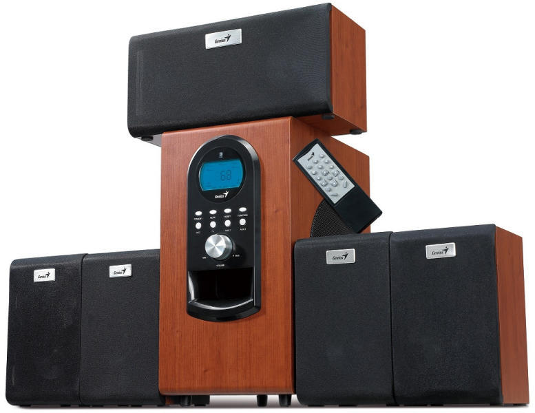 Gyártó: Genius Modell: SW-HF 5.1 6000 Tulajdonságok : Ez a hat-részes fa hangszóró rendszer a 100W-os (8") mélynyomóval szerelték az igazán szép mély hangok eléréséhez. 20W-os surround hangszórók biztosítják a tökéletes közép-magas tartományt. A távirányítón a hangerő mellett a bemenetek közötti váltást, továbbá a mély és a hátsó hangszórók ereje is állít