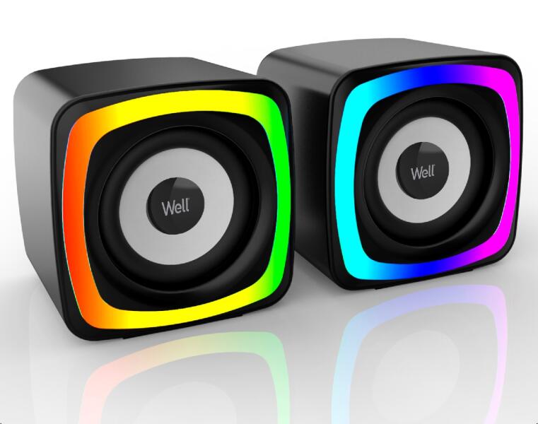 Termék leírás: Teljesítmény: 2 x 3 W A mágnesesen árnyékolt hangszórók Frekvencia tartomány: 20Hz – 20kHz Hangszóró RMS teljesítmény [W]2 hangerő szabályozás USB kábel hossza 1m Méretek: 75 x 75 x 75 mm Impedancia: 4 Ohm jack: stereo 3,5 mm-es kimenet Tápellátás USB-n keresztül DC 5V Bluetooth vagy 3,5 jack RGB