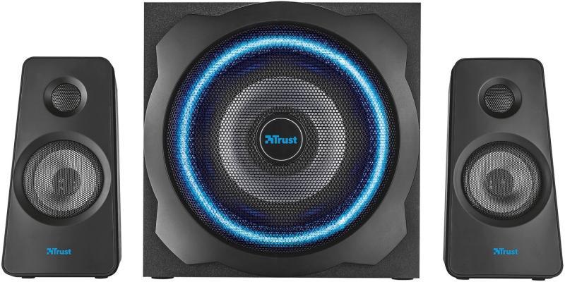 Gyártó: Trust Modell: GXT 628 2.1 (20562) Tulajdonságok: 2.1 hangfalrendszer fa mélynyomóval, 120 Watt csúcsteljesítménnyel Lüktető kék LED megvilágítás a mélynyomón Vezetékes hangerő szabályozás fejhallgató, illetve tablet/okostelefon csatlakozóval Kitűnő hangminőség mély basszussal PC, Wii, Sony PlayStation 3 és XBox 360 kompatibilitás Okos erőforrás-gazdálkodás: