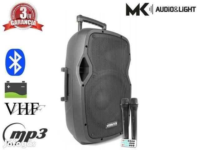 Vonyx AP-1200ACCU PLUS (12") 600W akkumulátoros hordozható hangfal (3xMik + MP3 + Bluetooth) Hivatalos magyarországi forgalmazótól. Leírás: A Vonyx AP ACCU PLUS sorozat különlegessége hogy a gyártó UHF frekvencián üzemelő mikrofonokkal szerelte, melynek köszönhetően sokkal erősebb a kapcsolat a mikrofon és a hangfal között, valamint jobb a hangminősége is. A hangfal tartoz