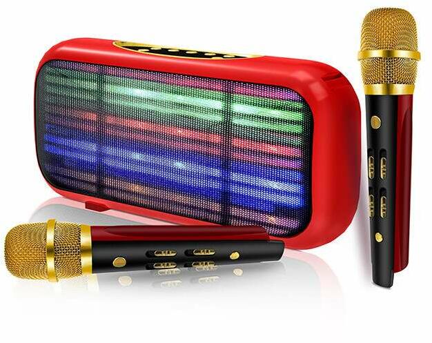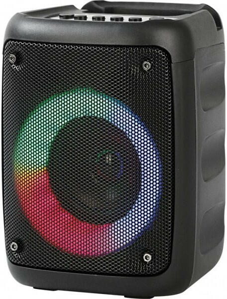 Portable Bluetooth speaker: Controlled via smartphone (bluetooth) or built-in buttons Bluetooth 5.0 compatible 18W RMS power Operating time: 5 - 7 h Speaker size : 75mm (3") Modes: bluetooth, FM radio, USB pen drive, microSD card, AUX, KARAOKE Multi-colour RGB backlighting in several modes (can also be switched off) Built-in Li-Ion 1500mAh 3.7V battery (rechargeable from micro USB) TWS - possibil