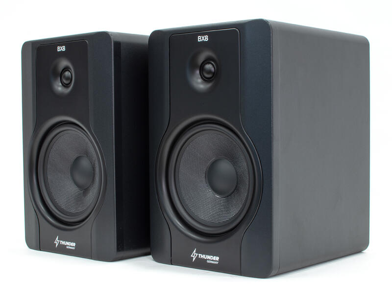 Thunder BX8 Kétutas aktív stúdió monitor hangfalpár 8" Hivatalos magyarországi forgalmazótól. Termékleírás: A Thunder BX hangfalak mindegyikére jellemző a kristálytiszta hangkép, intenzív basszusos hangzás. Kétutas rendszerének köszönhetően pontosan adja vissza a magas és mély frekvenciákat, ami fölöttébb hasznos a stúdiómunkák során. Hangereje mellett külső megje