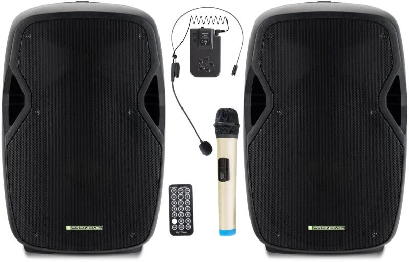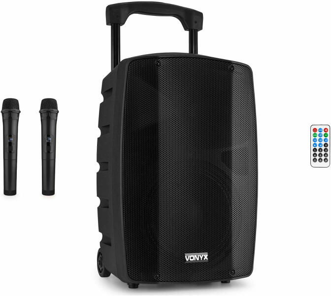 Műszaki adatok: - All-in-one hordozható audiorendszer - 2 UHF kézi mikrofont tartalmaz külön hangerőszabályzóval - Belső tároló a mikrofonok és kábelek számára - Egyszerűen beállítható és használható - nincs szükség műszaki háttérre - USB-port és SD-kártya foglalat, valamint AUX-bemenet - 200 W maximális kimeneti teljesítmény a nagy teljesítményű Bi-amp erősít