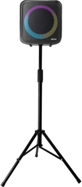 Akai hordozható BT hangrendszer (ABTS-S6 ) Hordozható partyhangszóró, tripod állvánnyal, diszkó világítással, Tölthető akkumulátor 1800 mAh, 4-8 óra töltéssel 3-5 óra üzemidő , Bluetooth, USB, MicroSD, FM rádió, USB lejátszás, AUX IN (3,5mm) AUX OUT, Mikrofon és Gitár bemenet, TWS vezeték nélküli párosítás egy másik azonos hangszóróval a jobb zenei teljesítmény