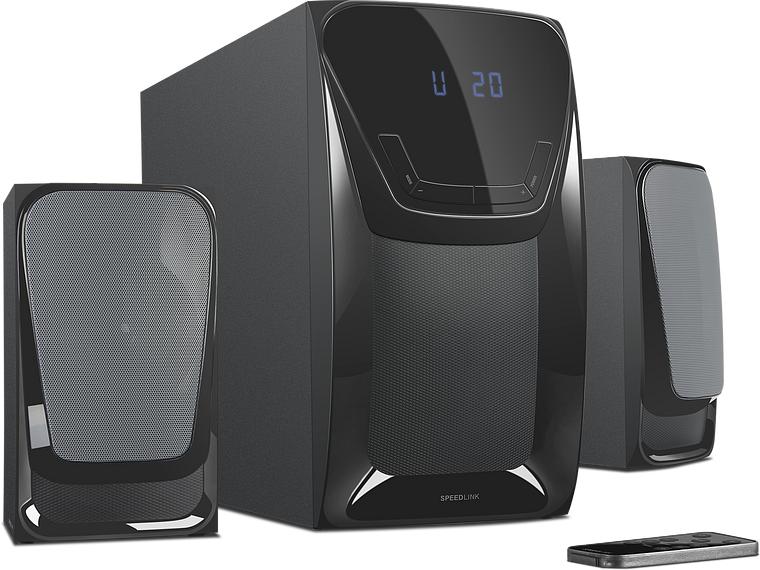 Az Eufonia 2.1 rendszer kiváló stílusa mellett hihetetlenül egyszerű használatot biztosít. A nagy méretű mélynyomó mellett az eszköz magas és mély hangzása is finomhangolható, a távirányító segítségével pedig a hangerő kényelmesen állítható. Az előlapi kijelző segítéségével mindig áttekintheti az aktuális beállításokat. - Aktív 2.1 hangszóró... Az Eufonia