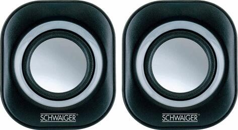 A Schwaiger sztereó hangszórókat számítógépekhez és notebookokhoz való csatlakoztatásra tervezték. A 6W összteljesítményű két hangszóró kiváló hangzást biztosít sztereó minőségben. A beépített hangerőszabályzó kényelmes kezelést biztosít.