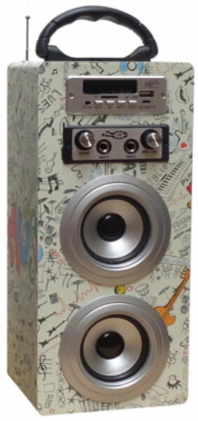 Ez egy automatizált szoftver általi fordítás:Mind a 2 mélyhangsugárzót 2 félkör veszi körül, amelyek a zene típusának megfelelően animálják az előlapot, hogy tetszés szerint ünnepi vagy romantikus hangulatot teremtsenek. Források: Bluetooth, USB vagy microSD Bemenetek: gitár, mikrofon és AUX Mély és magas hangok szabályozása Felvétel és ismétlés funkció Fényeffektus
