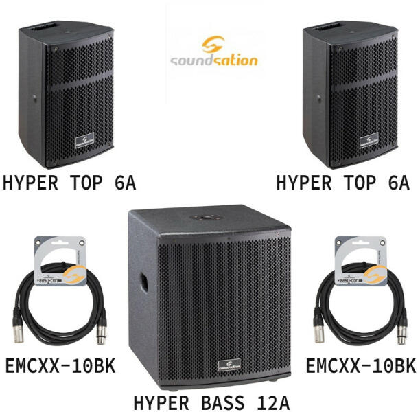 Leírás A szett tartalma: 1xHYPER BASS 12A mélynyomó + 2xHYPER TOP 6A aktív top + 2xEMCXX-10BK kábel HYPER BASS 15A: Bass reflex aktív mélynyomó Hangszóró: 12?, 3? voice coil Erősítő: 900W Csúcs/ 450W RMS, D-osztály Max SPL(Csúcs): 120dB Crossover frekvencia: 120 Hz (24dB/Oct. ) Frekvencia visszaadás [- 10dB]: 40 Hz és 150 Hz között Frekvencia visszaadás [- 3dB]: 50 Hz és 120