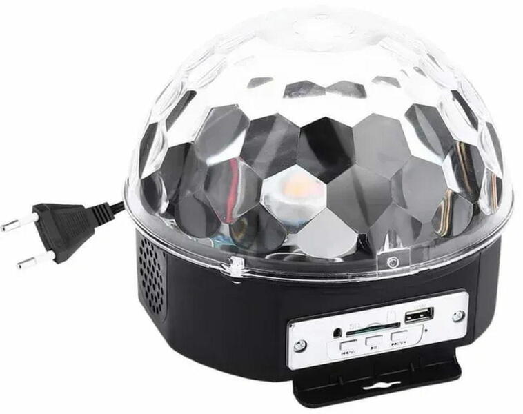Gyártó: MG Modell: Party Disco Ball Leírás: Hangszóró – kábel, LED projektor, diszkógömb kialakítás, távirányító, beépített MP3 lejátszó, SD kártya olvasó, USB port és sztereó hangszórók. Fényeffektusok széles választéka.