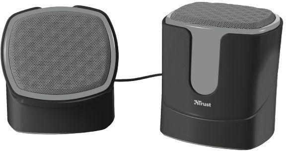 Trust Twizt 2.0 Rotating Speaker Set (19852) 10W peak power output (5 Watt RMS) Rotatable design, switch between spacious & direct sound USB powered - no wall power needed Inline volume control ) SOUND Power output (peak/RMS) 10W/5W Frequency range 100-20.000 Hz Impedance 4 Ohm CONNECTIONS Input wired 3.5mm Headphone connection no Microphone connection no Line-in connection no Power input USB