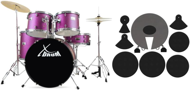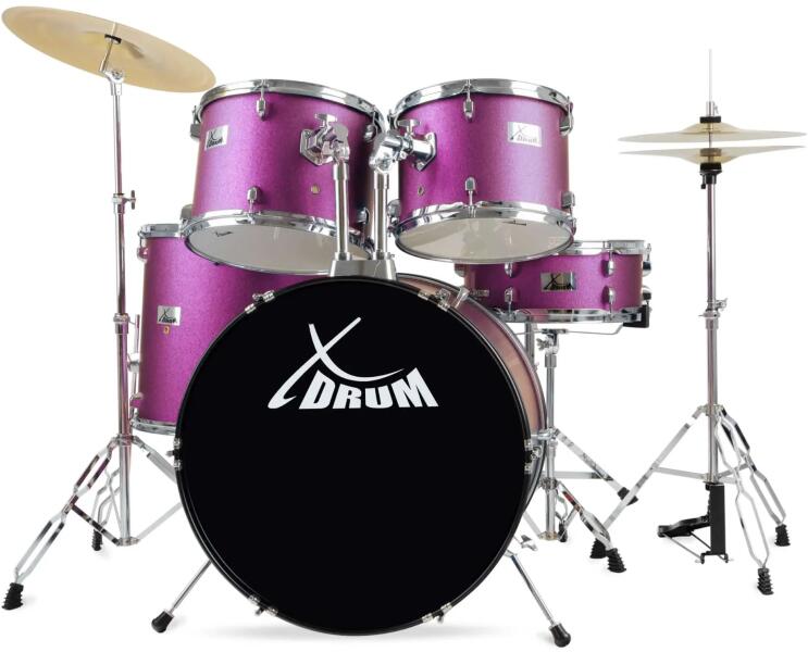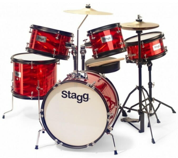 Gyerekdobszerelés cintányérokkal, dobszékkel 5 db dobtest Lábdob: 16" x 10" - 8 csavaros Tom tom: 8" x 5" - 8 csavaros Tom tom: 10" x 7" - 8 csavaros Álló tom: 12" x 10" - 8 csavaros Fa pergő: 10" x 5" - 8 csavaros Tom tartó karok, pergő állvány, lábgép Egyenes cin állvány 10" crash cintányérral Lábcin állvány 8" lábcintányér párral Dobszék 1 pár dobverő Fekete és kró