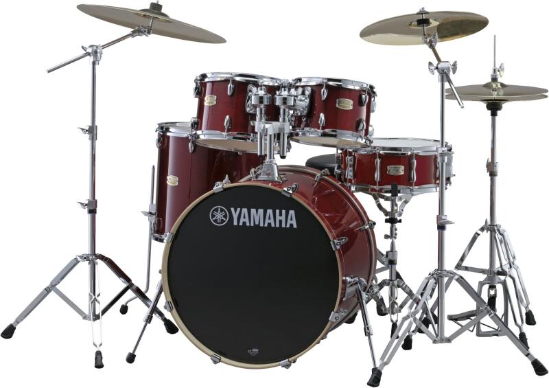 YAMAHA SBP2F5CR Stage Custom Birch Akusztikus dobszett Stage Custom Birch Standard SBP2F5 szett 22" x 17" lábdob (7 rétegű test) 16" x 15" álló tam 10" x 7" és 12" x 8" tam 14" x 5,5" pergő 6 rétegű nyírfa test Króm szerelékek Szín: Piros áfonya (Cranberry Red) A kép illusztráció! Az ár hardwarek és cintányérok nélkül értendő!