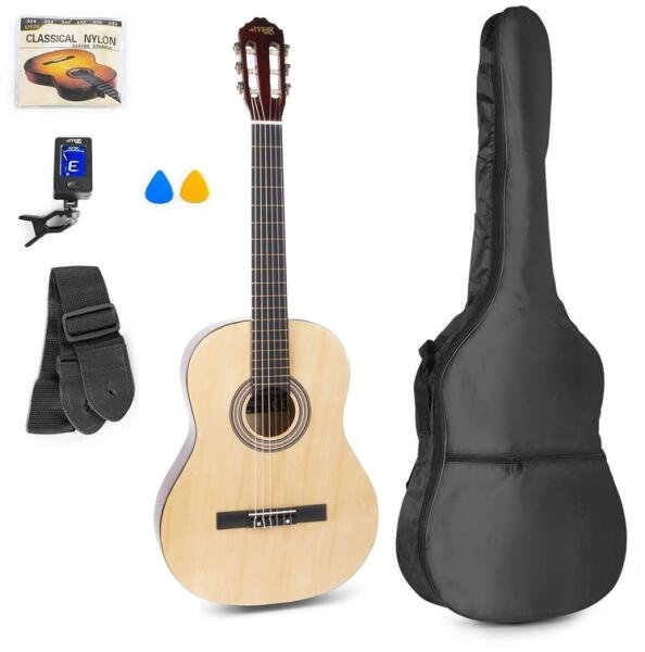 Műszaki adatok: - Teljes méretű klasszikus gitár - Kényelmes markolat és nylon húrok - Juhar fogólap, amerikai hárs test - Szín: fekete - Tömeg: 2,8 kg - Gitár méret: 39'' / 1000 x 310 x 110mm Szett tartalma: - Hordtáska - Pengető - Digitális hangoló - Tartalék húrok - Gitárszíj Termékleírás: A SoloArt Classic gitárcsomag egy teljes méretű, nylon húrú klasszikus gitár