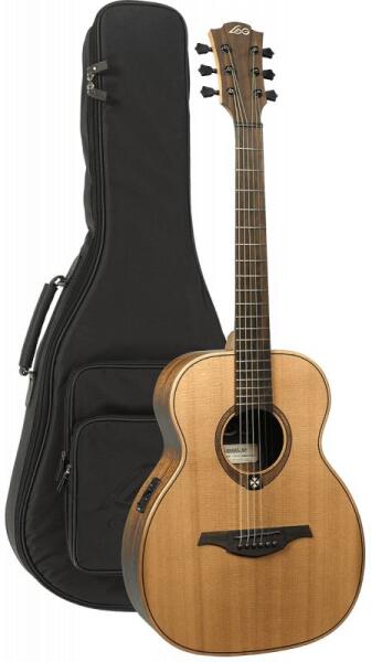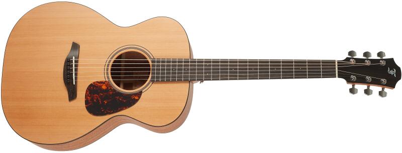 Elektroakusztikus gitár, tömör cédrus fedlap, Travel forma, puhatok Test: Travel Fedlap: tömör vörös cédrus Hát és oldal: Khaya Nyak: Khaya Fogólap: Brown Brankowood Menzúra: 600 mm Nyakszélesség a húrvezetőnél: 43 mm Bundok: 20 Medium Silver Nickel Szegélyezés: test Hangszedő: - Elektronika: Micro-Lâg Vezérlők: hangerő, 2 hangszín, hangológép Húrláb: Brown Brankowood
