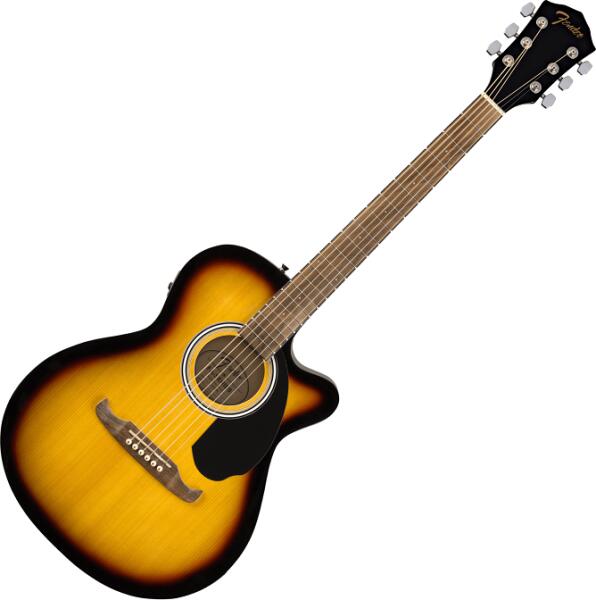 Koncert testű Fender elektro-akusztikus gitár Test: Hárs Top: Fenyő Nyak: Dió Fogólap: Dió Bundok: 20 Híd: Dió Menzúra: 25.3" (643 mm) Elektronika: Fishman Szín: Sunburst (Színátmenetes)