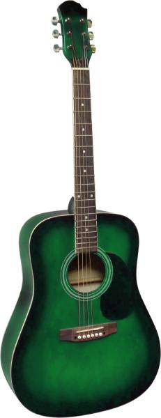 Western gitár Fedőlap: rétegelt lucfenyő Test és keret: vörös hársfa 20 bund Fényes polírozás Szín: zöld, fekete szegély