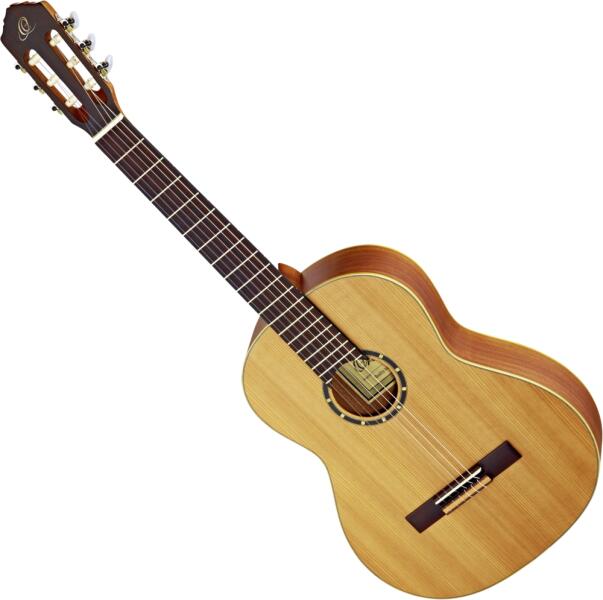 ORTEGA R131L Balkezes Klasszikus Gitár Fedlap:cédrus Hát és oldal: mahagóni Nyak: mahagóni Fogólap: sonokelin Menzúra: 650mm Nyakszélesség a húrvezetőnél: 52 mm Érintő: 19 Hangoló:chrome plated Húrláb: sonokelin Nyakállitó pálca Szín: natúr
