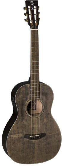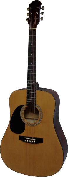 4/4-es méretű fémhúros akusztikus gitár. A gitár mérete eltér a megszokott akusztikus mérettől (Dreadnought), annál kisebb, a klasszikus gitár (neylon húros gitár) méretéhez hasonló! A hangja megegyezik a normál fémhúros gitárok hgangjával, csak valamivel halkabb annál a kisebb testméret miatt. Kiváló hangszer tanulásra, utazáshoz, otthoni gyakorlásra, de tábortűzné