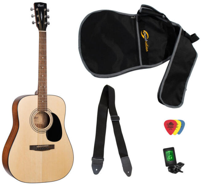 Akusztikus gitárszett. Cort AD810 gitár - mint az AF510 típus, csak nem folk, hanem dreadnought testtel, minimális formai különbséggel ...