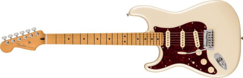 A Fender legújabb szériája: Player PLUS! Balkezes! Konstrukció: csavarozott Test: éger Nyak: jávor Fogólap: jávor (rádiusz: 12") Menzúra: 648 mm (25.5") Nyakszélesség a húrvezetőnél: 42,8 mm (1.685") Bundok: 22 (medium jumbo) Hangszedő: Player Plus Noiseless Strat single (nyak), Player Plus Noiseless Strat single (közép), Player Plus Noiseless Strat single (híd) Elektronika: 1 h