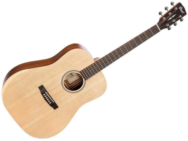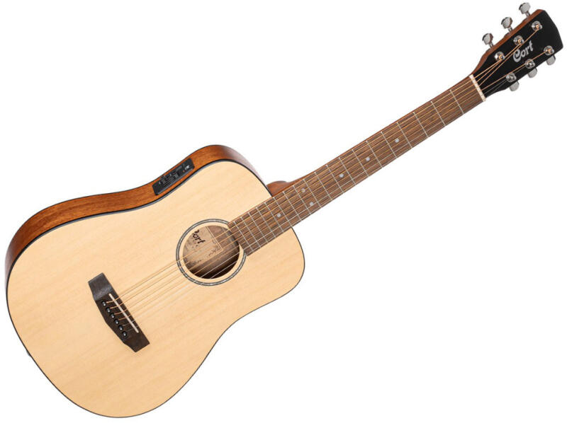 Testforma: 3/4 mini Dreadnought testforma, dovetail nyakcsatlakozásFedlap: fenyőHát- és oldallap: afrikai mahagóni (okoume)Nyak: mahagóni (palaquium)Fogólap: merbauFogólap berakás: fehér pontokFelsőnyereg szélessége: 43 mmMenzúra: 578 mmBund: 19Híd: merbauKulcs: die-castElektroni ka: Cort® CE304TSzín: nyílt pórusú ...