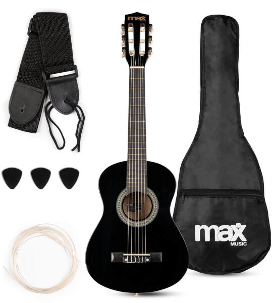 Műszaki adatok: - Márka: max - Klasszikus gitár - Kényelmes markolat és nylon húrok - Juhar fogólap, amerikai hárs test - Szín: fekete - Tömeg: 1,25 kg - Gitár méret: 778 x 332 x 86 mm - 1/4 Klasszikus gitár - Kényelmes markolat és nylon húrok - Test: Basswood - Fogólap: Maple A SoloArt készlet tartalmazza még: - Tartós puha táska - Pengető (2x) - Csipeszes digitális hangol