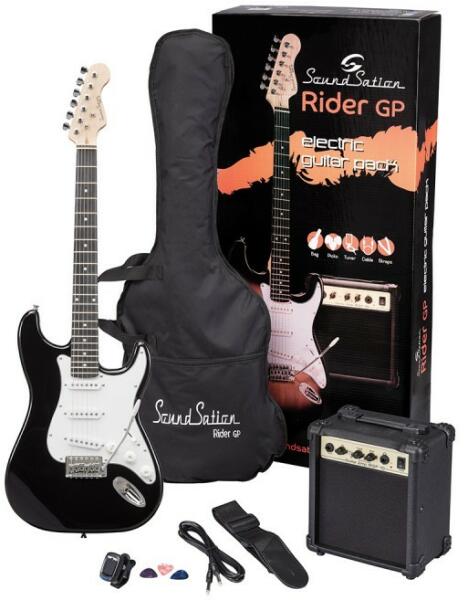 A gitárszett tartalmaz egy Soundsation Rider-GP elektromos gitárt, egy RGP-10 vintage stílusú kombót, egy csíptetős hangolót, amely lehetővé teszi a kábelek nélküli hangolást, egy gitártokot, 3 pengetőt, kábelt és vállpántot. Soundsation Rider-GP gitár: dupla cutaway hársfa test, juharfa nyak, 22 bundos eco rózsafa fogólap, 3 single coil pickup, 5 állású kapcsoló RGP-10