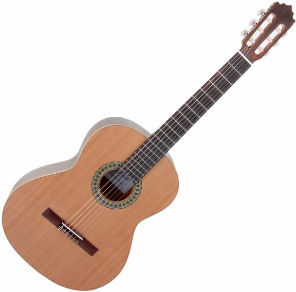 Color: BlackNeck: Mahogany Fingerboard: Blackwood 21 fretsBody: 4/4 MahoganyScale length: 650 mmNut width: 43 mmNumber of strings: 6Brigde: BlackwoodTop: cedar massiveWeight: 2.10 kg