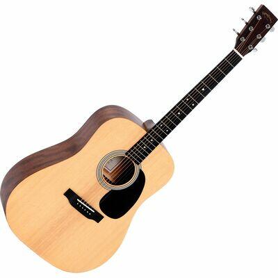 Gyártó színe: Natural, Szín: Natural, Felületi javítás: Csillogás, Típus: Dreadnought, Kivágás: Nem, Korpusz: Rétegelt, Első lap: Lucfenyő, Hátsó lap: Hársfa, Kávák: Hársfa, Nyak: Nato, Menzúra: 643 mm, Érintők száma: 20, Nullás hurláb szélessége: 43 mm, Fogólap: Dió, Húrláb: Dió, Zéró küszöb: Műanyag, Hangszedő: Nem, Hangszedő típusa: Nem tartalmaz, Elekto