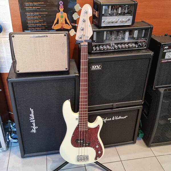 Sandberg California VS4 Lionel Greenline Basszusgitár (Creme)4 húros basszusgitárTest: ÉgerNyak: JávorNyakprofil: CMenzúra: 30" / 854 mmFogólap: Pau Ferro, 22 bundFogólap rádiusz 14"Fogólap szélessége a 0. érintőnél: 39.5 mmFogólap berakás: -Koptató: Tortoise shellHardware színe: KrómSzín: Lakkozott KrémPickupok: 1 x Sandberg blacklabel VSElektronika: Hangerő (Push-pull: act
