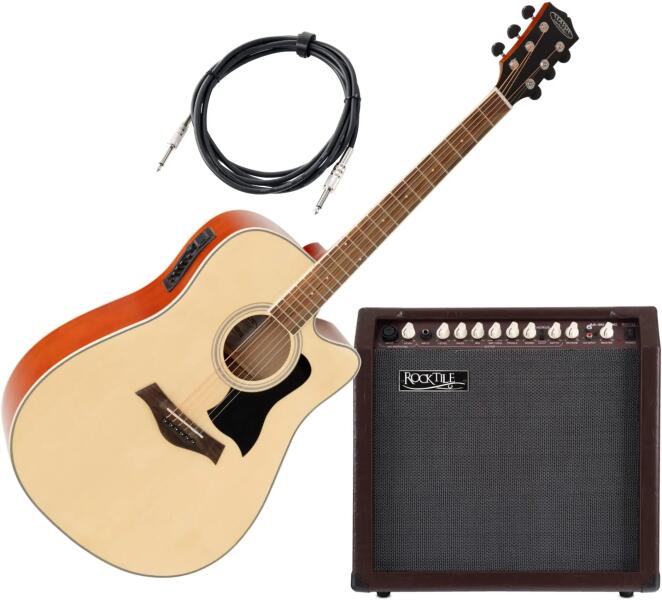 Testforma: Dreadnought CutawayFedlap: tömör fenyőHát- és oldallap: mahagóniNyak: mahagóniFogólap: diófa Fogólap berakás: gyöngyház pontok Fogólap rádiusz: 12" (305 mm)Felső nyereg ...