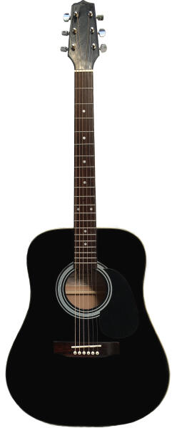Gyártó színe: Black, Szín: Fekete, Felületi javítás: Csillogás, Típus: Dreadnought, Méret: 3/4, Kivágás: Nem, Korpusz: Rétegelt, Első lap: Agathis, Hátsó lap: Sapele, Kávák: Sapele, Nyak: Nato, Menzúra: 592 mm, Érintők száma: 18, Nullás hurláb szélessége: 43 mm, Fogólap: Dió, Húrláb: Dió, Zéró küszöb: Műanyag, Hangszedő: Nem, Hangszedő típusa: Nem tartalmaz,