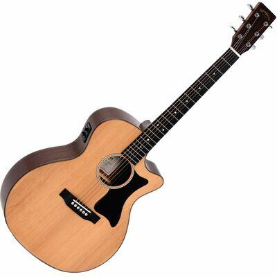 Gyártó színe: Sunburst, Szín: Sunburst, Felületi javítás: Matt, Típus: Grand Auditorium, Kivágás: Igen, Korpusz: Félmasszív, Első lap: Lucfenyő-masszív, Hátsó lap: Sapele, Kávák: Sapele, Nyak: Mahagóni, Menzúra: 648 mm, Érintők száma: 20, Nullás hurláb szélessége: 42,8 mm, Fogólap: Ében, Húrláb: Ében, Zéró küszöb: NuBone, Hangszedő: Igen, Hangszedő típusa: P