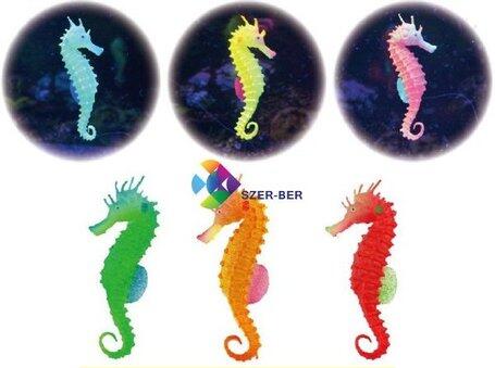 Poppy Pet csikóhal lebegő akvárium dekoráció. Gumiból készített akvárium dekoráció, mely egy tapadókorongra és damilra erősítve lebeg az akváriumban. Élénk színei pompásan ragyognak az akvárium világítás fényében, sötétben pedig foszforeszkálnak. A rögzítés ad egy kis mozgásteret a vízáramlás keltette úszkáláshoz.