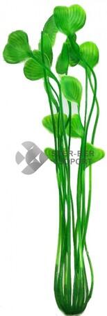 Hosszúszárú akváriumi műnövény széles zöld levelekkel. Mutatós, természetes hatású dísz. A dekorációs szerepe mellett a díszhalaknak is rejtekhelyet nyújt, ami nagyban növeli a komfortérzetüket. Élő növényekkel együtt is behelyezhető, remekül kiegészíti a látványvilágot. Talpa nehezékként szolgál, stabilan az akvárium alján tartja a műnövényt. Magassága kb