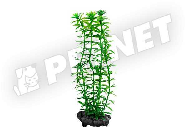 Zöld hínár talpán apró növényekkel akváriumi műnövény. Mutatós, természetes hatású dísz. A dekorációs szerepe mellett a díszhalaknak is rejtekhelyet nyújt, ami nagyban növeli a komfortérzetüket. Élő növényekkel együtt is behelyezhető, remekül kiegészíti a látványvilágot. Talpa könnyen az aljzatba ásható, stabilan az akvárium alján tartja a műnövényt.