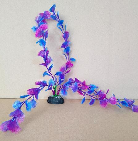 Lila és kék hosszúszárú akváriumi műnövény. Mutatós, természetes hatású dísz. A dekorációs szerepe mellett a díszhalaknak is rejtekhelyet nyújt, ami nagyban növeli a komfortérzetüket. Élő növényekkel együtt is behelyezhető, remekül kiegészíti a látványvilágot. Talpa nehezékként szolgál, stabilan az akvárium alján tartja a műnövényt.