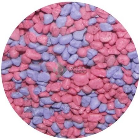 750g Rózsaszín-kék mix akvárium aljzat. Ez az aljzatkavics különleges látványvilágot biztosít az akváriumodnak. Színezése biztonságos eljárással történik. Nem oldódnak ki belőle káros anyagok, nem befolyásolja az akváriumvíz minőségét. Élőnövényes akváriumba legalább 5 cm vastag aljzatréteg szükséges.