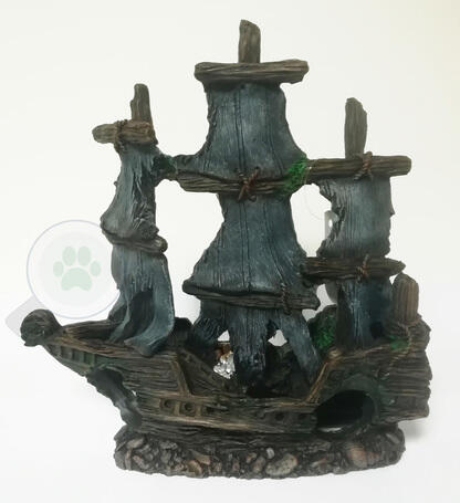 Látványos akvárium dekoráció akváriumba, háromárbocos vitorlás kalózhajó roncs. Méretek: 26 x 10 x 27 cm