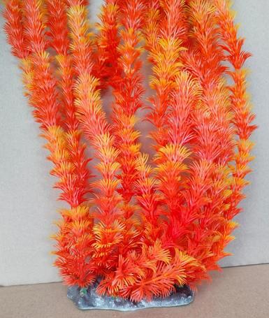 Nagyméretű narancssárga ambulia akváriumi műnövény. Mutatós, természetes hatású dísz. A dekorációs szerepe mellett a díszhalaknak is rejtekhelyet nyújt, ami nagyban növeli a komfortérzetüket. Élő növényekkel együtt is behelyezhető, remekül kiegészíti a látványvilágot. Talpa nehezékként szolgál, stabilan az akvárium alján tartja a műnövényt.