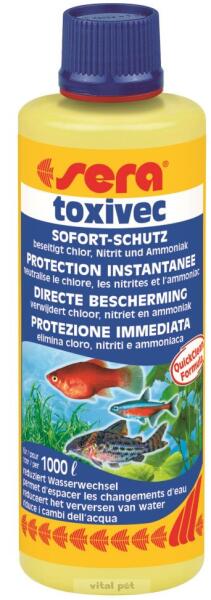 Termék részletekSERA Toxivec 250 ml A sera kutatások újdonsága. A sera toxivec azonnal eltávolítja a halak számára káros anyagokat, mint pl. a nitrit, ammónia, klór és klóraminok, az akvárium vizéből. Megelőzi az algák növekedését és csökkenti a vízcserék számát. / eltávolítja az ammóniát és nitritet, megakadályozza a magas nitrát értékeket, eltávolítja a klórt, klóraminokat