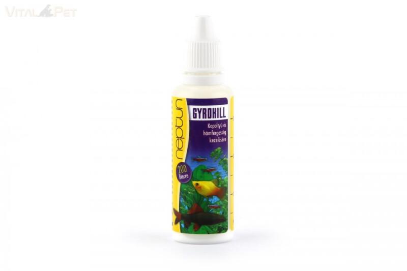 Termék részletekNeptun Gyrokill – Hatékony, gyorsan ható folyadék halak kopoltyú- és hámférgességének kezelésére. Egyszerűen adagolható, biztonságos az akváriumi növényekre. Neptun Gyrokill – Védje halait a parazitáktól! A Neptun Gyrokill egy speciálisan kifejlesztett folyékony készítmény, amely hatékonyan küzd a halak kopoltyú- és hámférgessége ellen. Ez a gyakori betegség je