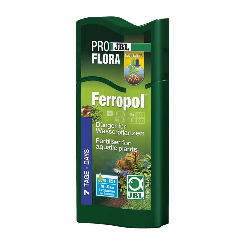 JBL Ferropol - Tápoldat akváriumi növények számára. Alapellátás az életképes növényzetért. Ásványi anyagokat és a növények számára hasznosítható vasat tartalmaz. Elősegíti a növények szaporodását. Élénk piros és zöld levélszínek. Elősegíti a növények növekedését és megoldja az algaproblémát. Csak az egészséges növények biztosítják a jó vízminős