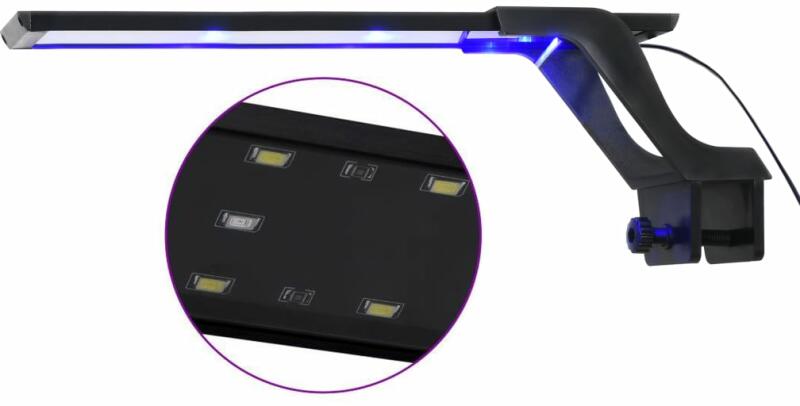 Termék részletekvidaXL kék és fehér LED-lámpa akváriumhoz szorítóval 35 - 55 cm Vékony és modern kialakítású, állítható szorítóval rendelkező akváriumlámpánk kiválóan alkalmas vízi növények számára, és díszíthet akváriumot, beltéri vízi kertet, szobanövénytartót stb. A rendkívül fényes és energiatakarékos, két világítási móddal rendelkező LED-ek kiemelik a halak sz